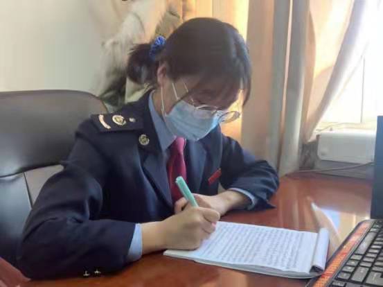 2020年是特殊的一年,是各种挑战层出不穷的一年,对投身西部计划的海洋科技与环境公司2016级毕业生谢菁菁而言,却也是在各种抉择前依然遵循心中理想,踏出坚定步伐的一年。早在毕业之前谢菁菁的内心就已经埋下了一颗想要为祖国西部建设贡献青春力量的种子,也早就将奔赴远方,成为一名光荣的西部计划志愿者作为她内心的理想,很幸运她真的来到了新疆、来到了新疆唯一的蒙古自治县—和布克赛尔蒙古自治县,一个名字中带着“梅花鹿”和“马背”的边陲宁静小城,远处静静伫立的赛尔山将这片土地安全地守在祖国的怀抱。谢菁菁的服务岗位在税务局机关党委,与其他志愿者们一样,在各自的岗位上贡献力量,机关党委是税务局唯一的行政科室,工作特点是多主题、多头绪、多任务穿插进行,在这样的环境下需要不急不躁地去做每一件事,需要认真踏实,细心去落实好每件事。