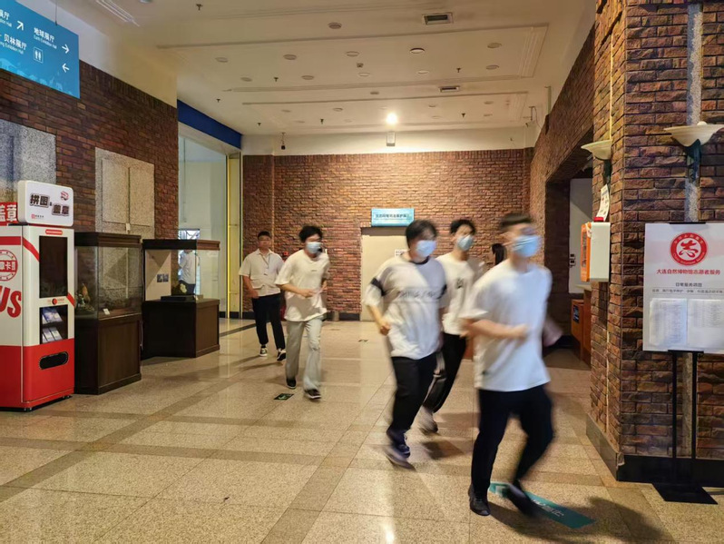 活动由三部分组成,一是由自然博物馆安全负责人讲解火灾应急处置流程,包括疏散路线、逃生方式、初期火灾扑救等核心内容;二是进行游览场馆消防安全疏散演练;三是在自然博物馆北广场,由沙河口区消防大队队长现场演示干粉灭火器使用方法,随后组织员工实操演练。